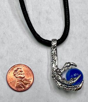 Birds are the masters of the sky. They take flight with outstretched wings and gain a view of the entire world. Freedom is more than just a thought to them, it’s their very reality. They can go wherever they’d like whenever they like, from secluded woodlands to bustling cities, secluded mountaintops to busy village plazas. They are free in every sense of the word. Now you can show your freedom with our Bird Claw Necklace. Featuring a excellently crafted silver claw clutching a beautiful blue stone and strung with a simple and elegant piece of black cord, this piece of jewelry is an amazing piece and a must have for any animal lover, renaissance faire enthusiast, or just someone who appreciates a fine piece of jewelry.