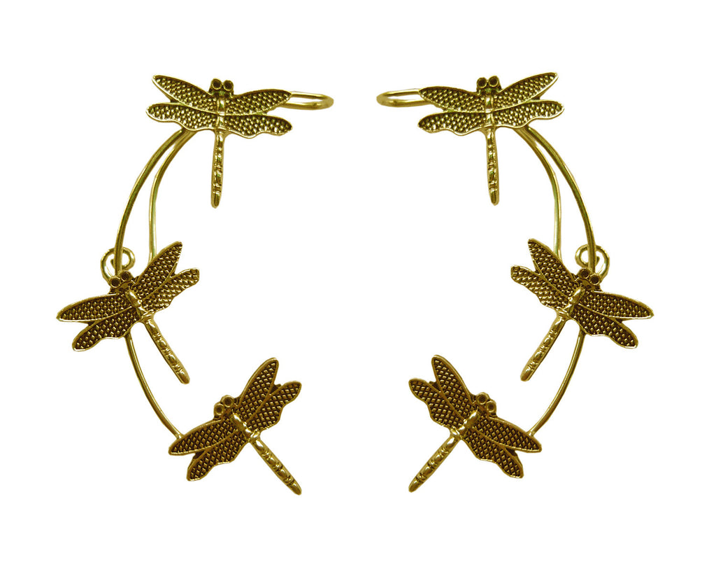 Dragonfly Elf Ear Cuffs - Gold Lightweight Non Piercing Jewelry front view