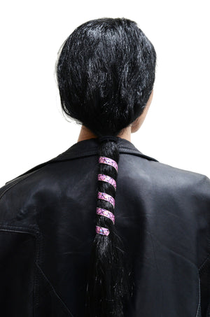 Shine bright and stand out. The Holographic Pink Ponytail Wrap by Medieval Metal is a vibrant 6-inch faux leather Hair Twister designed to add instant shimmer and bold color to your look. Perfect for ponytails or braids, this wrap creates eye-catching festival-ready style in seconds.