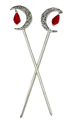 Embrace celestial beauty with our Moon with Gem Hair Sticks, designed with a crescent moon motif accented by sparkling gems. These elegant accessories bring a touch of magic and mystery to any hairstyle.
