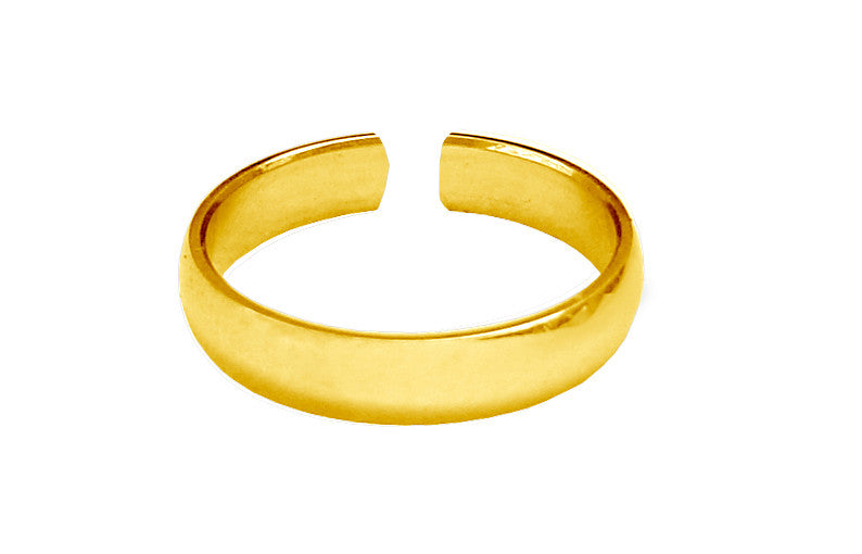Gold plain band toe ring with adjustable fit